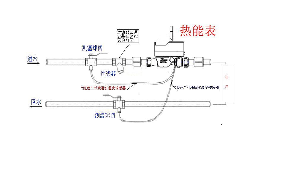 先確定熱量表的現場安裝方式,熱量表可安裝在用戶采暖系統進水管道或出水管道